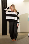 This Rundholz cotton knit pullover combines a relaxed silhouette with charming botanical detail. Featuring a wide, boxy fit and classic raglan sleeves, it’s crafted from a super-soft light-to-mid weight knit designed for year-round comfort. The playful striped pattern is elevated by a delicate tulip motif, while raw rolled hem detailing adds a touch of lived-in, casual texture to the edges.
