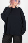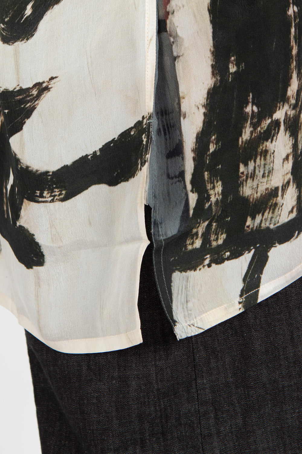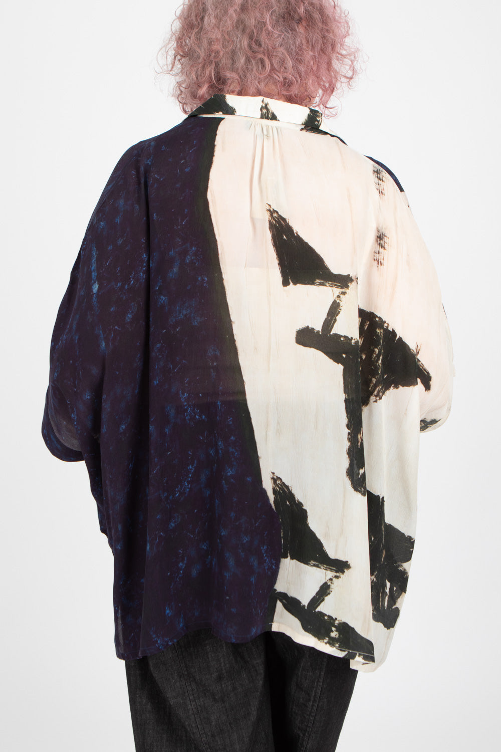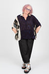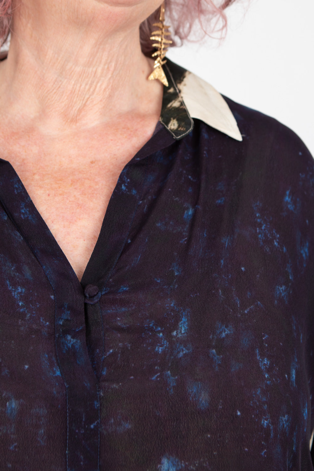 This striking top, is so easy to style, the black and white print mixed with the mottled blues means this will style, with almost anything. Wear as an extra layer over a dress, pair with jeans or your favourite trouser. The open v neckline is flattering, and can be layered with a pullover in the cooler evenings.