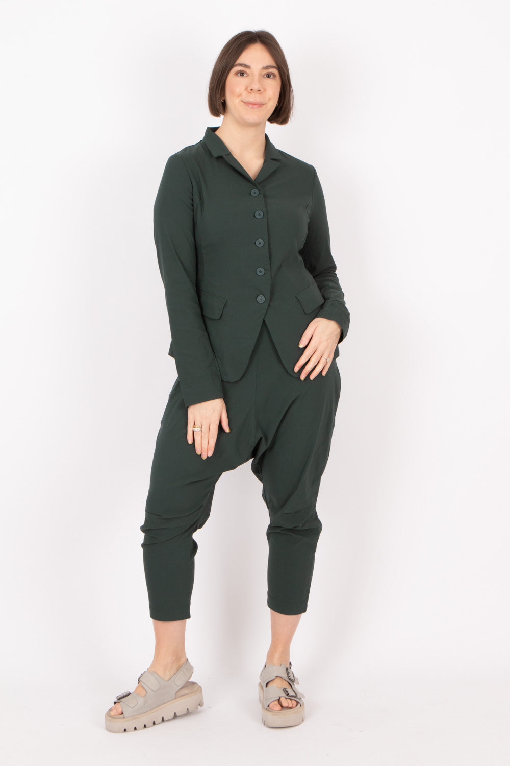 A Rundholz signature for modern utility. This fitted jacket is crafted from high-performance techno stretch fabric, featuring a neat collar, button closure, and slanted flap pockets for a sharp yet effortless silhouette.