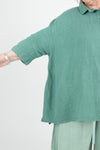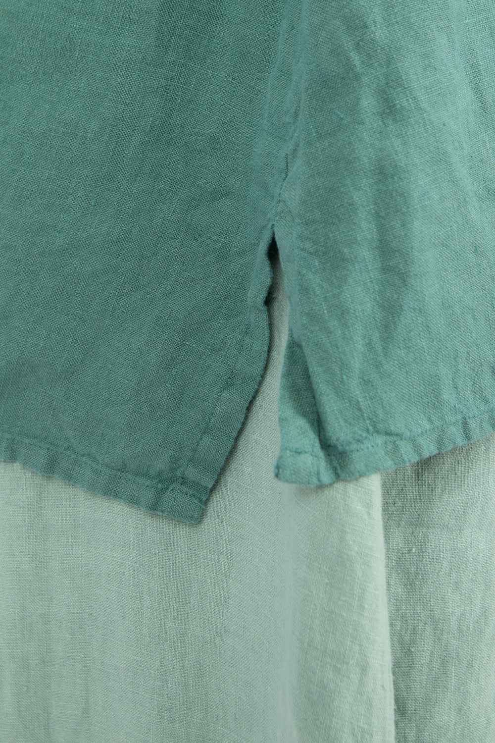 Elevate your wardrobe with this 100% Rundholz linen shirt, designed with a subtle A-line silhouette that hangs beautifully. It features a neat collar, classic button closure, and a modern front seam detail. With elegant 3/4 sleeves and a longer back hem, this piece offers a sophisticated, effortless drape.