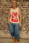 Classic Rundholz vest top, with a spray painted rabbit. The vest top is an easy way to add the collection to your wardrobe. Style with shorts on warm days or layer with a cropped pullover.