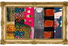 Savannah Spot, Dark Multi Pixel, Pink Mural, Painters Stripe, Orange Shape Dye, and Navy Curiosity.