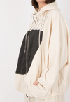 Oversized hoodie featuring a drawstring hood, dropped shoulders, and bold zip closure with oversized zips. Finished with two side pockets. Available in classic black or a striking moon print.