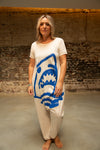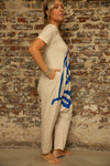 Easy to wear summer jersey jumpsuit, loose harem style with t-shirt sleeve needs no styling.