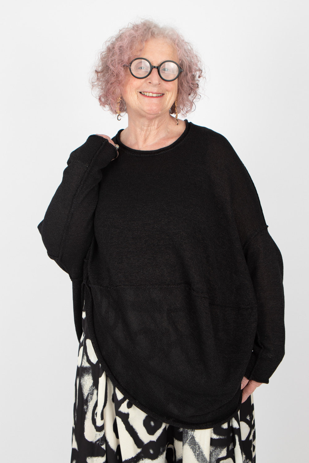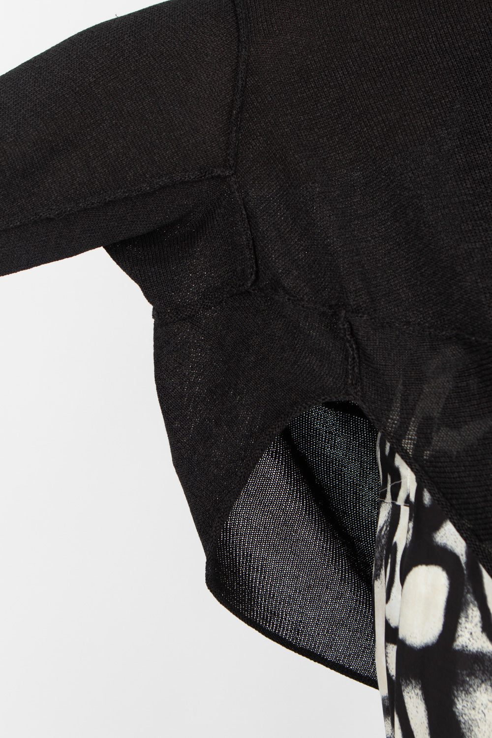 Rundholz super-lightweight knitted top is designed for effortless layering when the sun goes down. Featuring a striking curved asymmetric hem, this piece flows beautifully over dresses and pairs perfectly with harems or skirts.