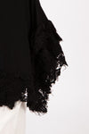 This fabulous tunic-style vest is a creative avant-garde masterpiece. Wear it as a standout statement piece with trousers or a skirt, or layer it with other black pieces to showcase the signature distressed lace trim and asymmetric silhouette.