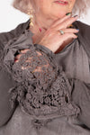 A great addition to add to any outfit, The ribbed jersey is super comfortable and the flute lace sleeves adds drama to your outfit. It would look fabulous worn over a dress for a wedding or occasion.