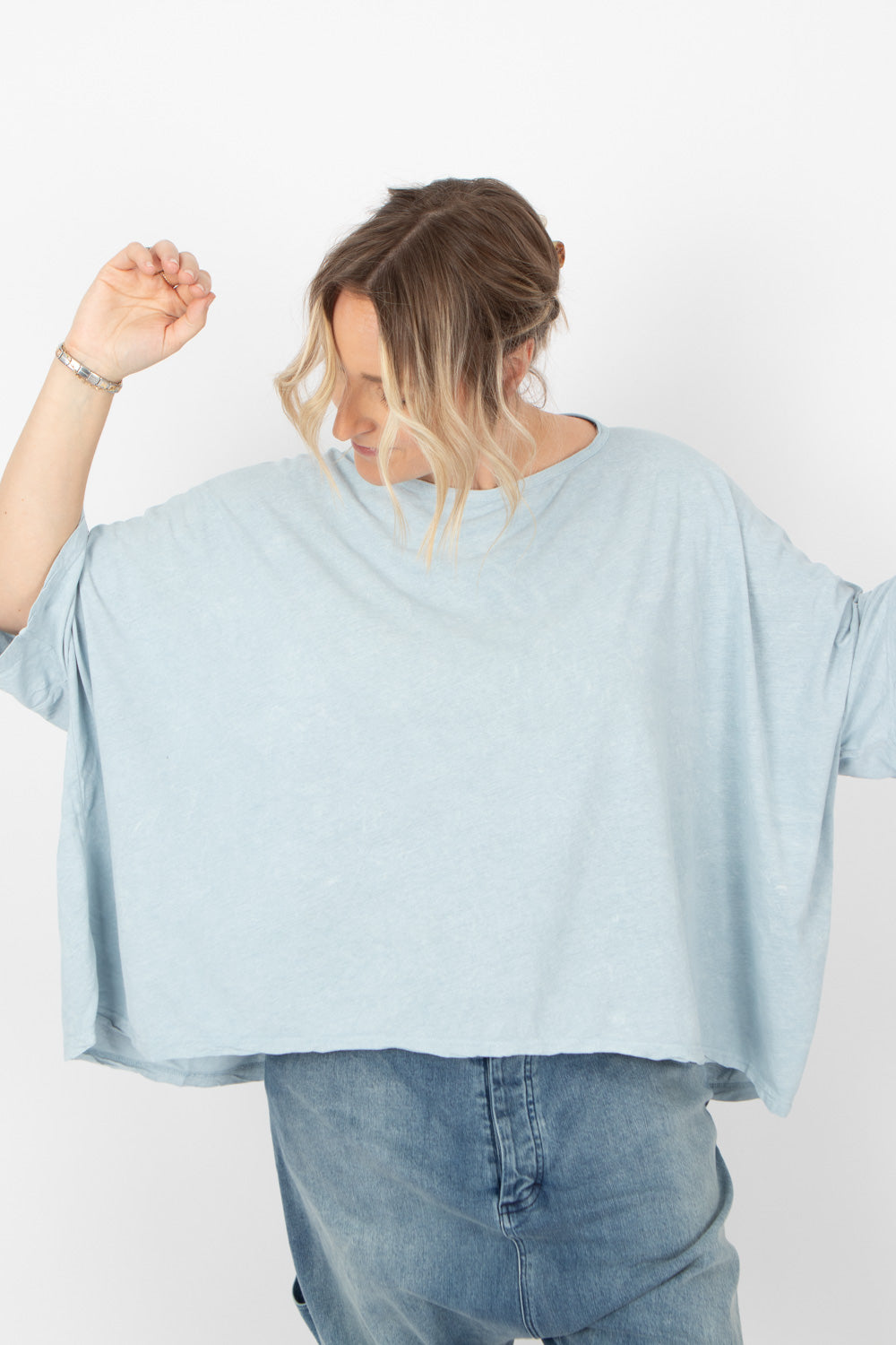 This lovely soft dyed t-shirt, will become a go to in your summer wardrobe, light and easy to wear. The oversized t-shirts are a staple Rundholz shape and this seasons dyes and shades are easily styled with the rest of your Rundholz wardrobe.
