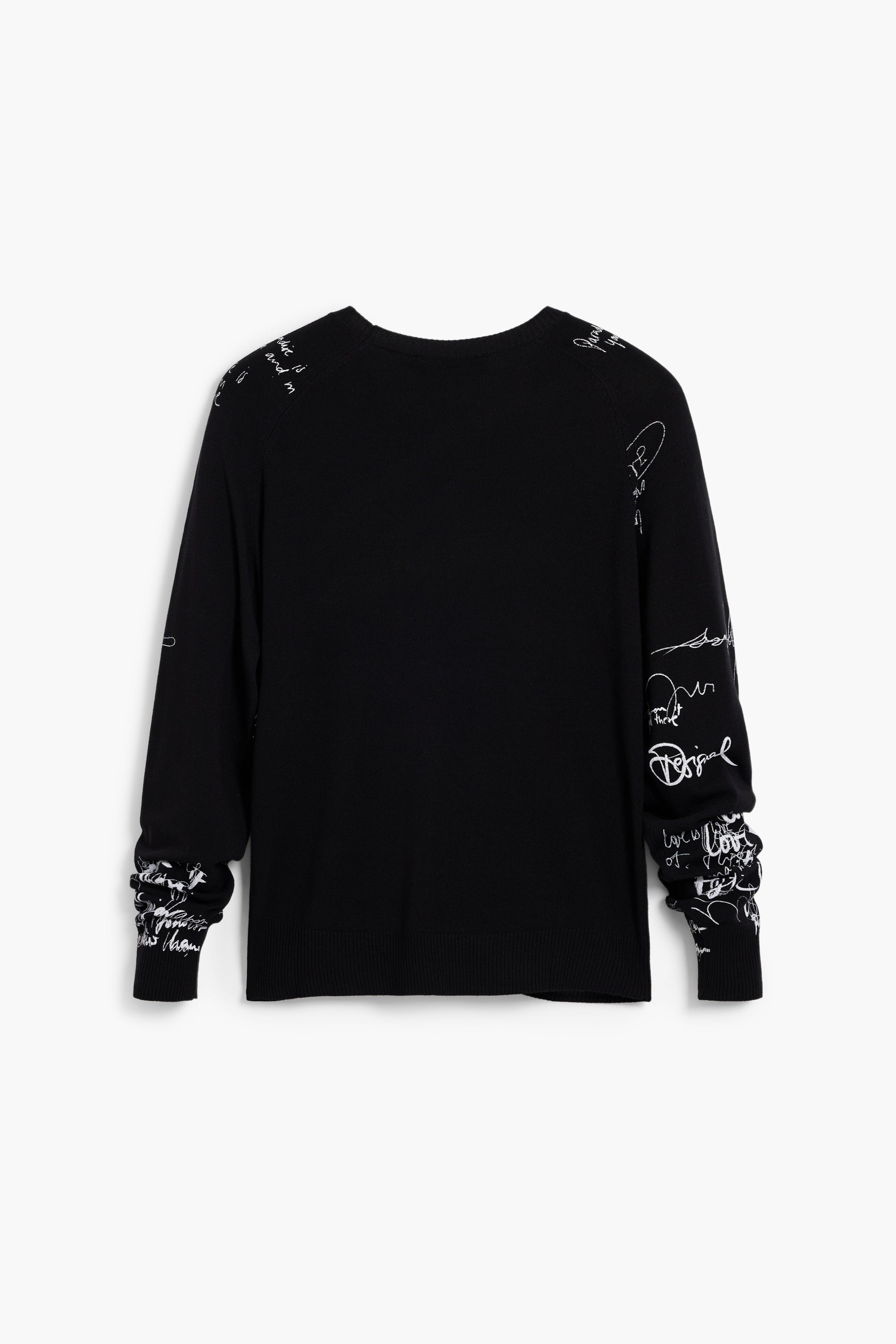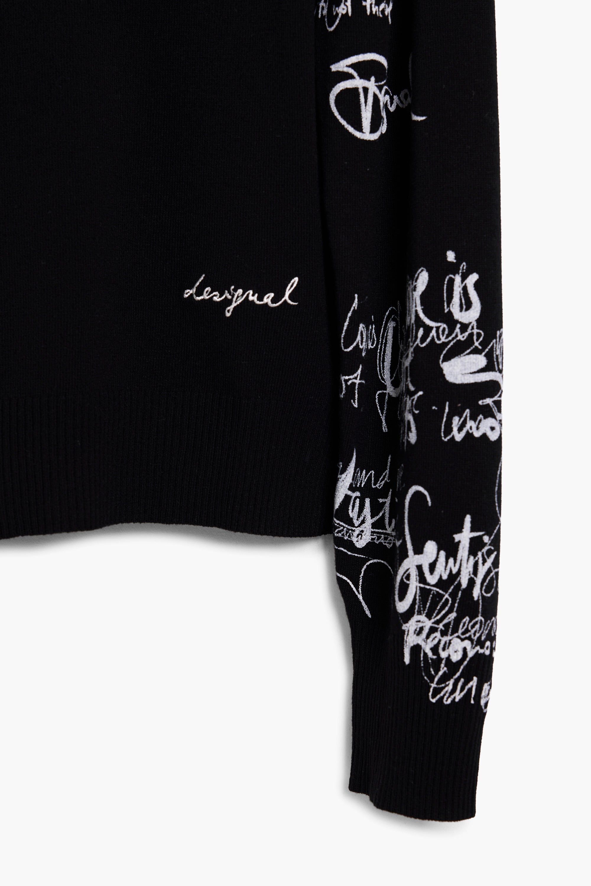 White script print all over the sleeves