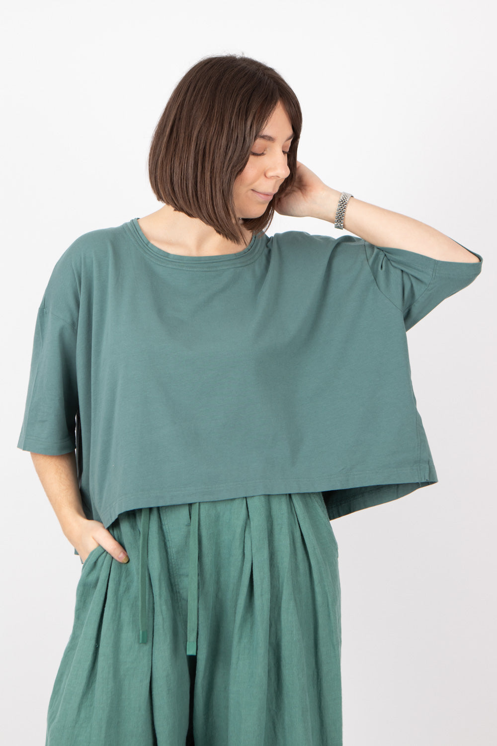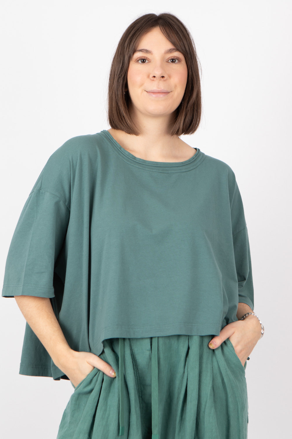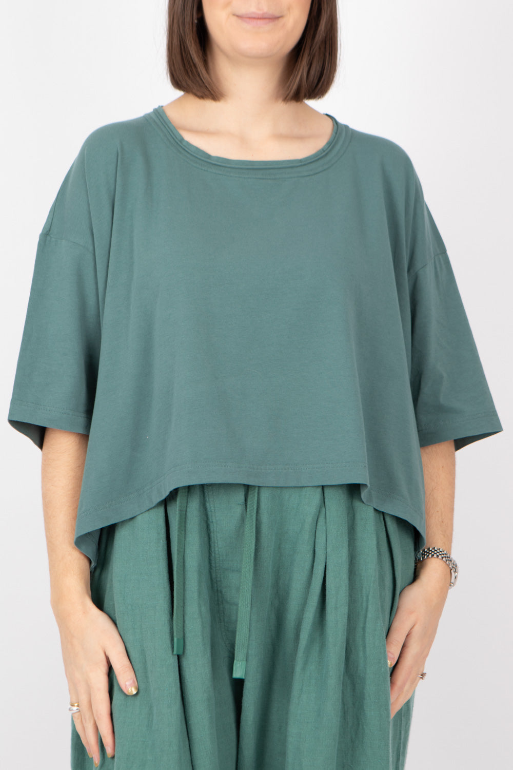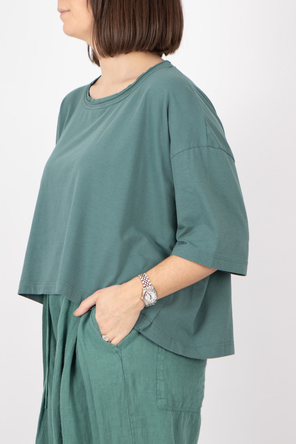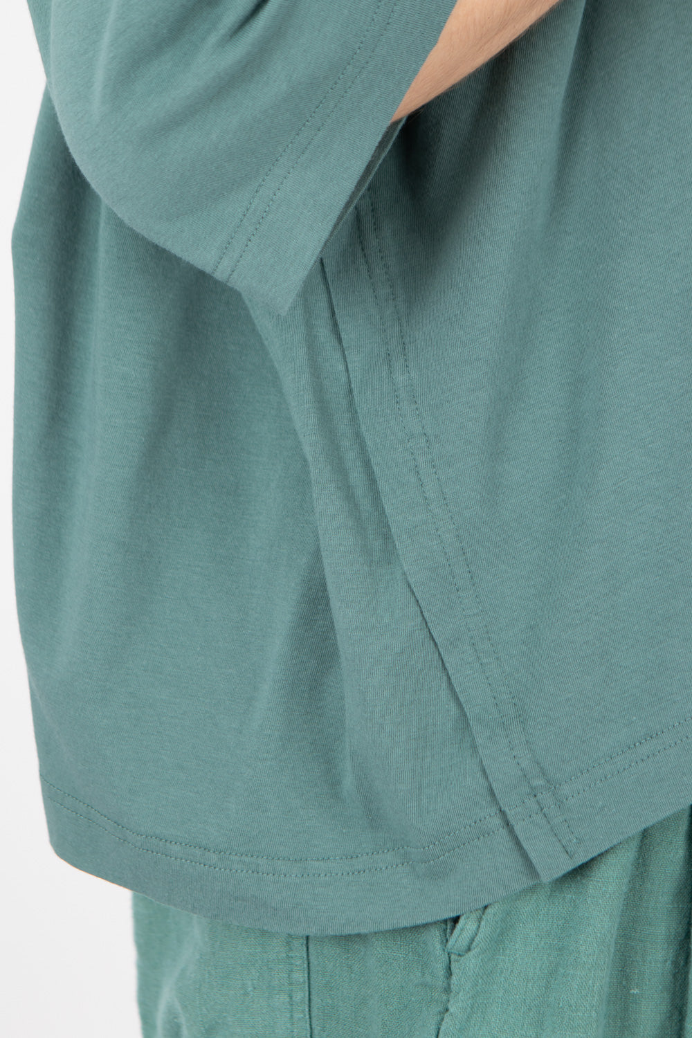 Effortless style meets everyday comfort in this Rundholz boxy-fit top. Made from ultra-soft, stretchy cotton jersey, it features a relaxed silhouette with longer short sleeves and a classic round neck. Detailed with a double-rolled collar and exposed side seams, it’s a modern take on a premium essential.