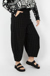 Modern structure meets effortless stretch. These Rundholz barrel-leg trousers are crafted from a smooth techno fabric featuring an all-over stitched white check design. Designed with a sculptural silhouette, they feature functional side pockets and classic rear patch pockets for a polished, contemporary finish.