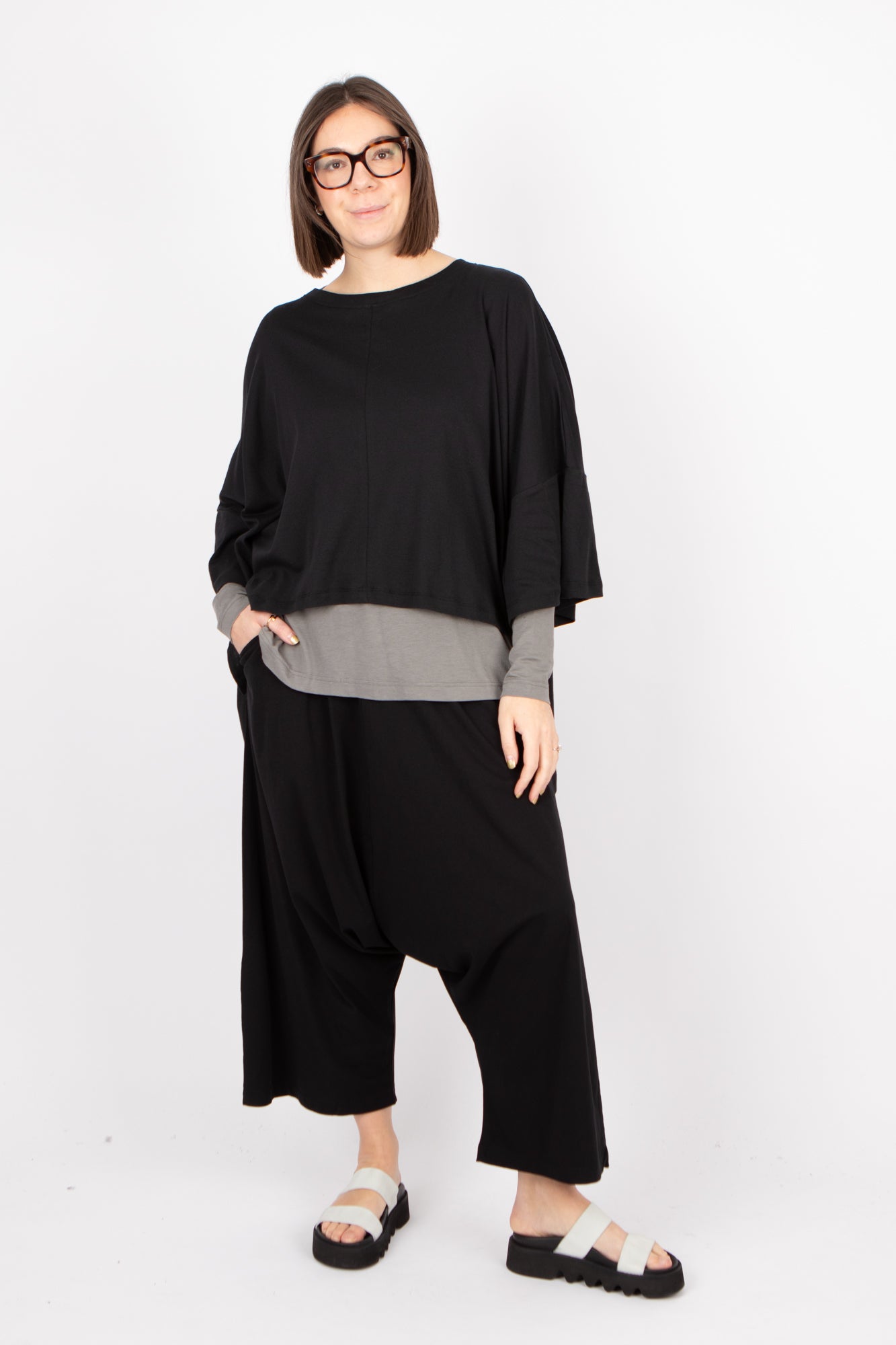 Wide leg and exaggerated drop crotch make these trousers super flowy for spring summer. We love this shape!