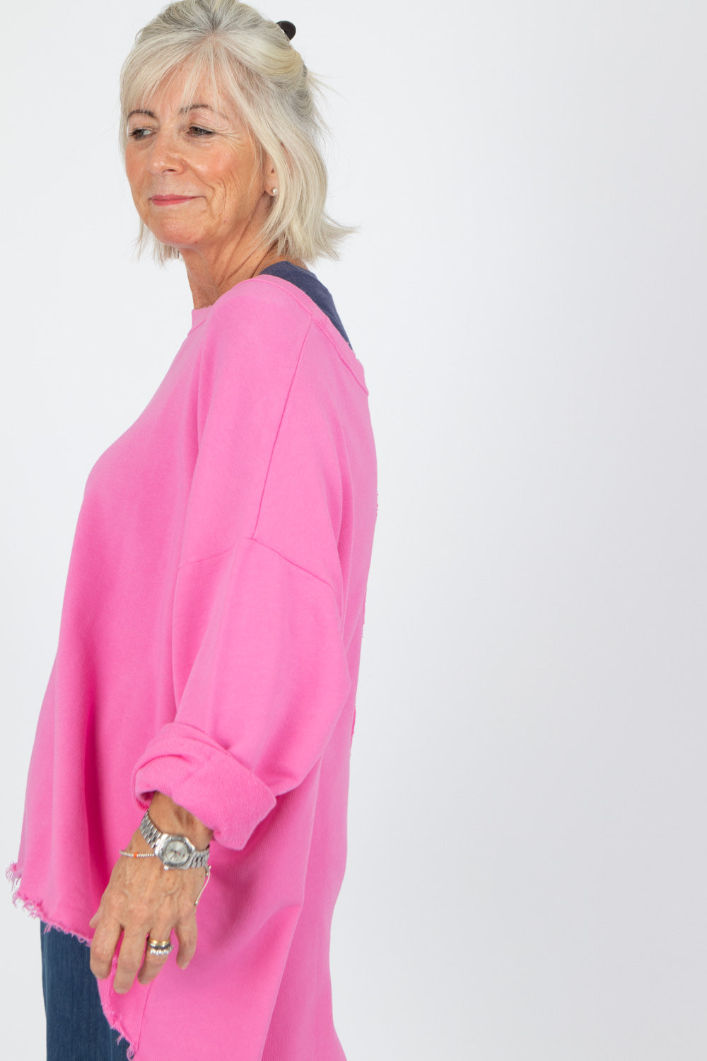 Designed with a relaxed, slightly oversized fit and a modern high-low hem. The raw edges and subtle distressed features, combined with a beautiful garment dye, create a truly high-end feel.