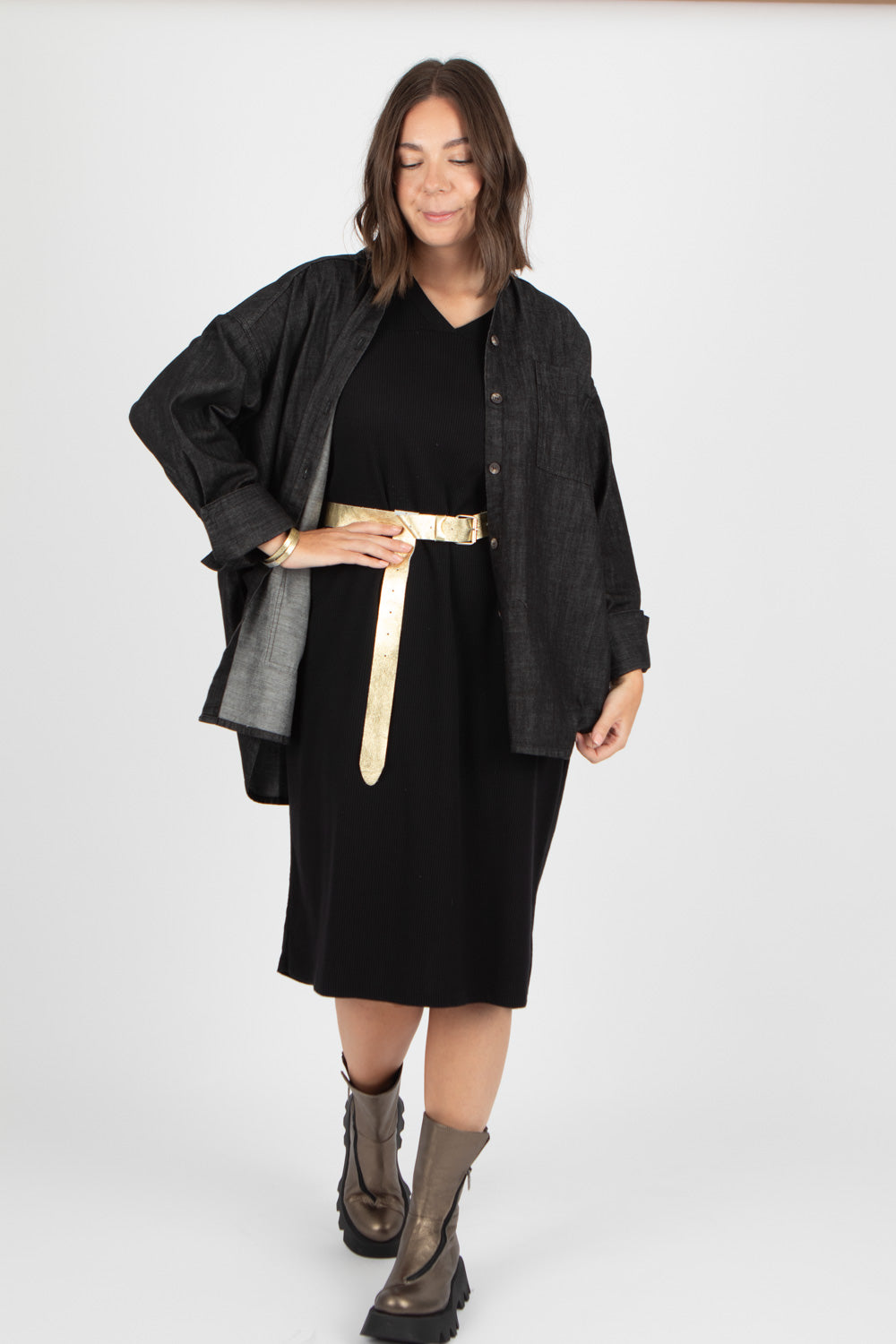 This boyfriend fit shirt creates a perfect effortless vibe. We love the asymmetric patch pocket detailing and the exaggerated cuffs that make it a bit different.