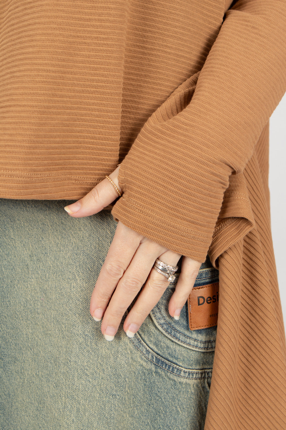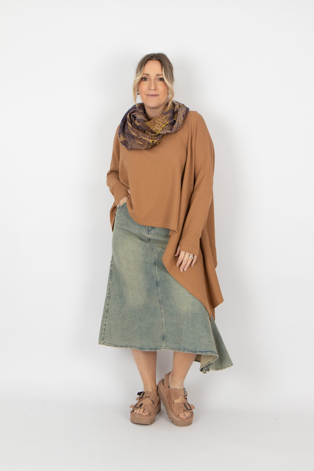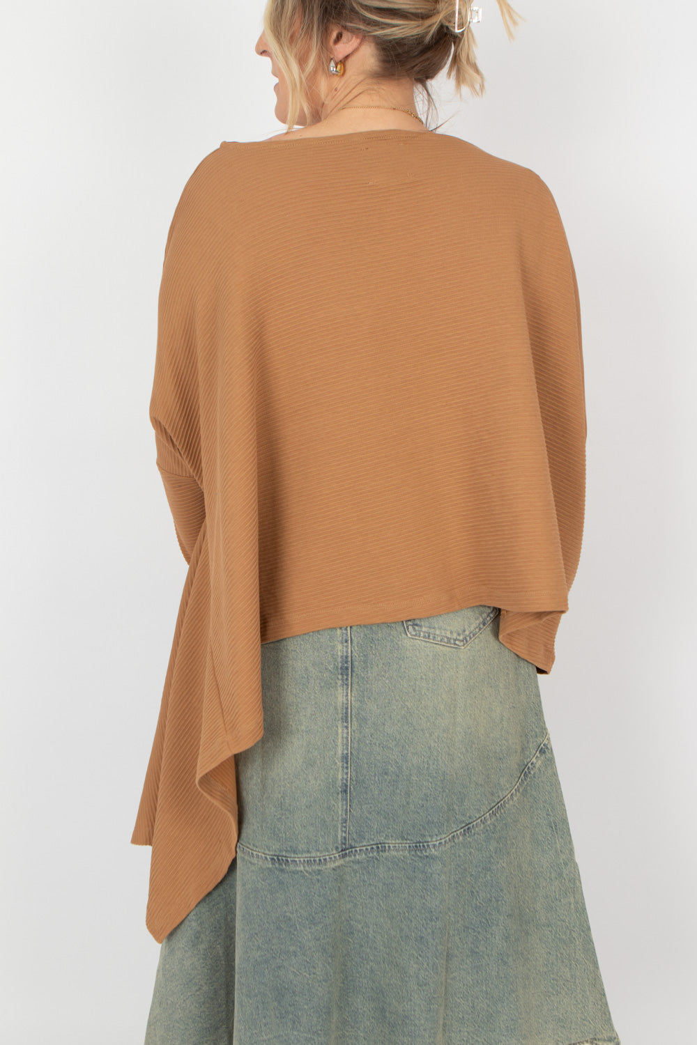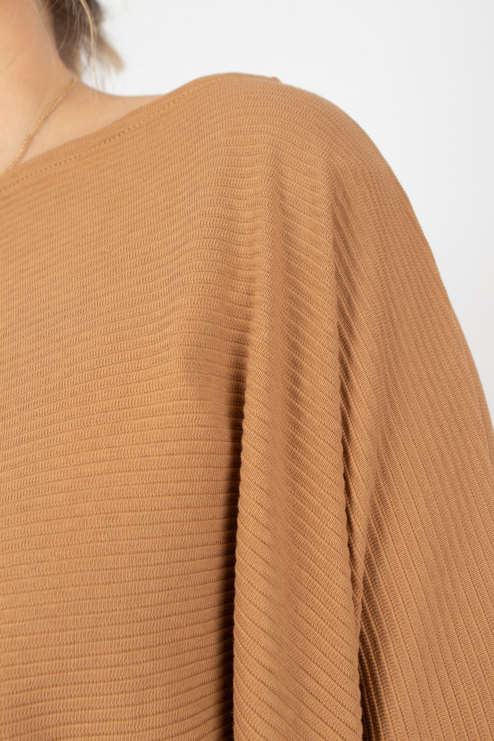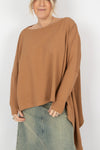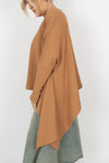 Lightweight and super soft, this oversize top is super handy. It instantly updates a simple look, with its exaggerated sleeves and asymmetric side detail
