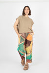 A bold colour block linen trouser. We have picked out the soft turquoise colour and paired it with the Estudio viva sweatshirt. But would equally look great if styled with chocolate or a more natural palette.
