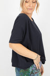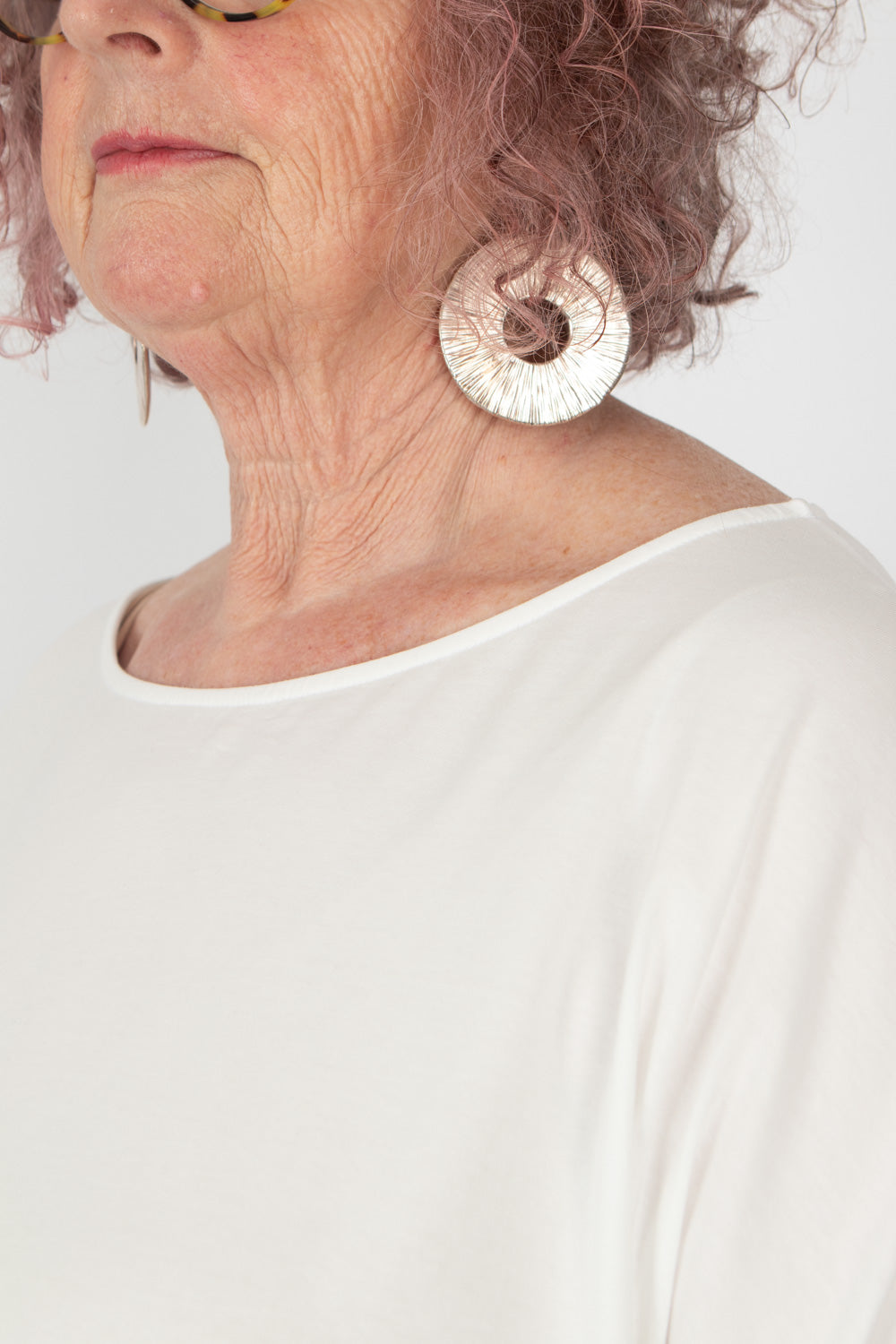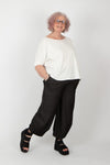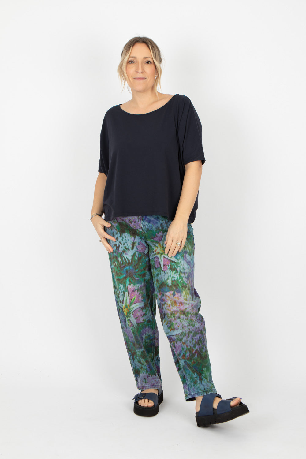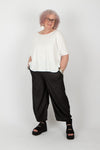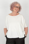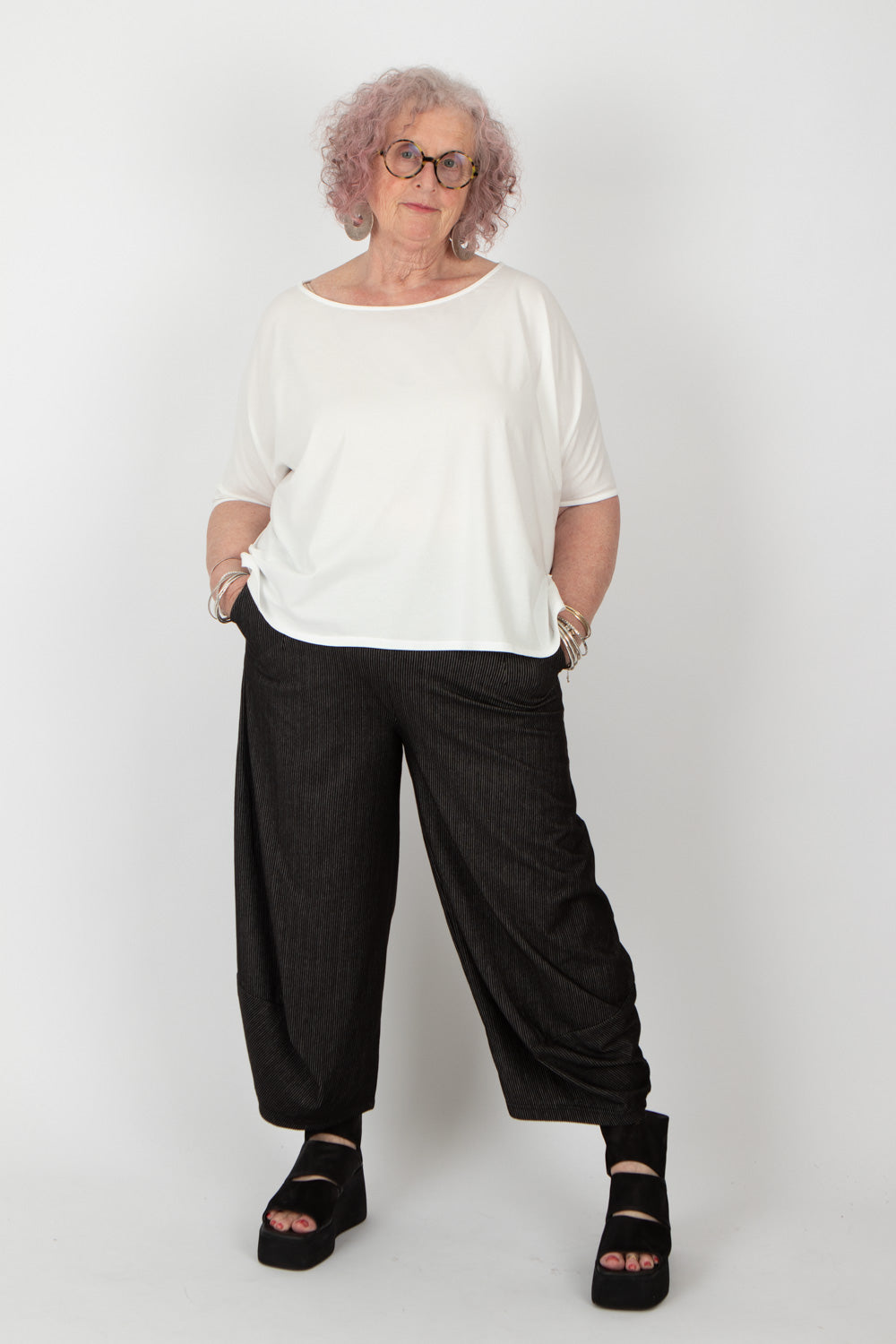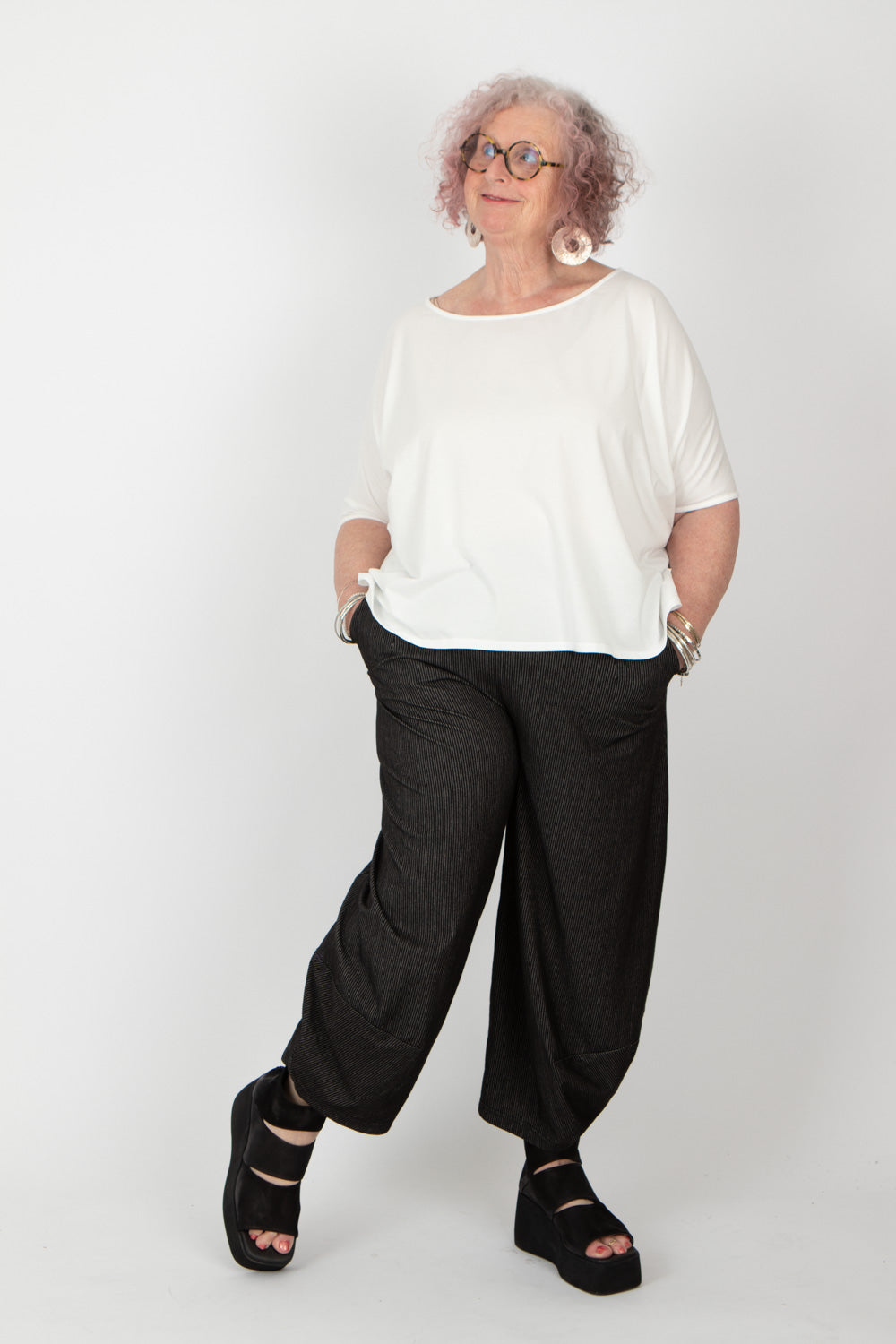 Pair a cotton mid-length top with slim-fit trousers or leggings to balance its longer proportions and maintain a streamlined silhouette.